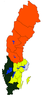 Värmland, Västra Götaland, Halland, Kronoberg, Blekinge och Skåne