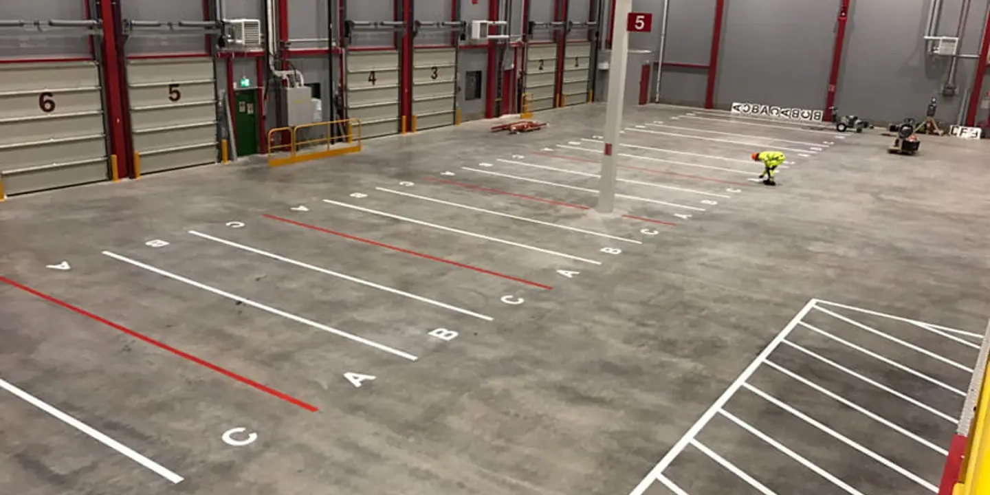 Utöver parkeringsplatser så målar vi alla förekommande linjer på industrigolv så som avspärrningar, ledlinjer för truckar och gående, uppställningsytor, övergångsställen etc.