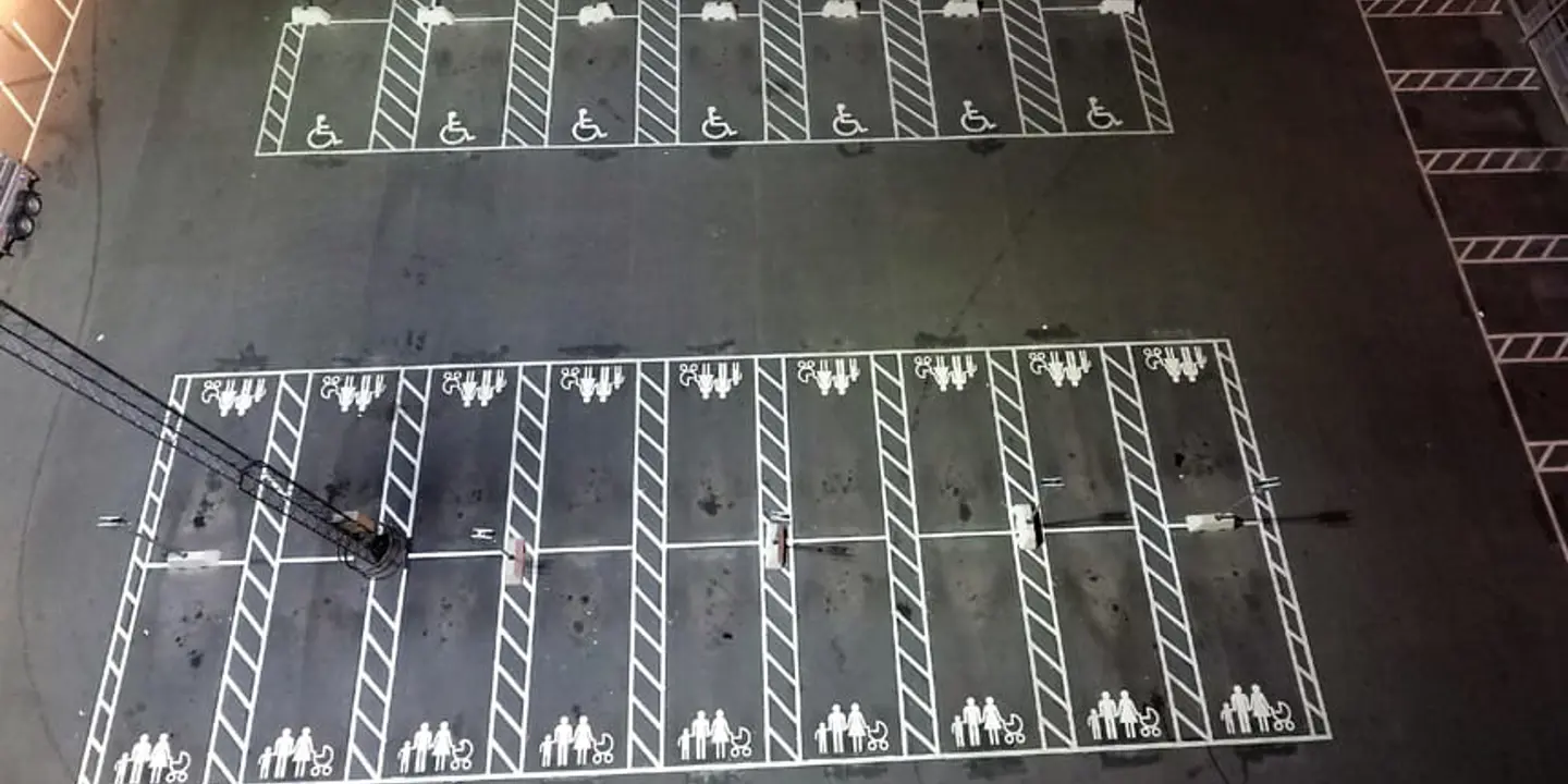 Utöver själva linjerna för parkeringsplatsen erbjuder vi även målning av tillhörande markeringar och symboler, så som text eller siffror i rutorna. Det kan vara allt från numrerade platser och familjeparkeringar till platser för rörelsehindrade eller motorcyklar. Du kan också få unika symboler eller texter målade, till exempel ditt företags logotyp, även den i valfri färg.